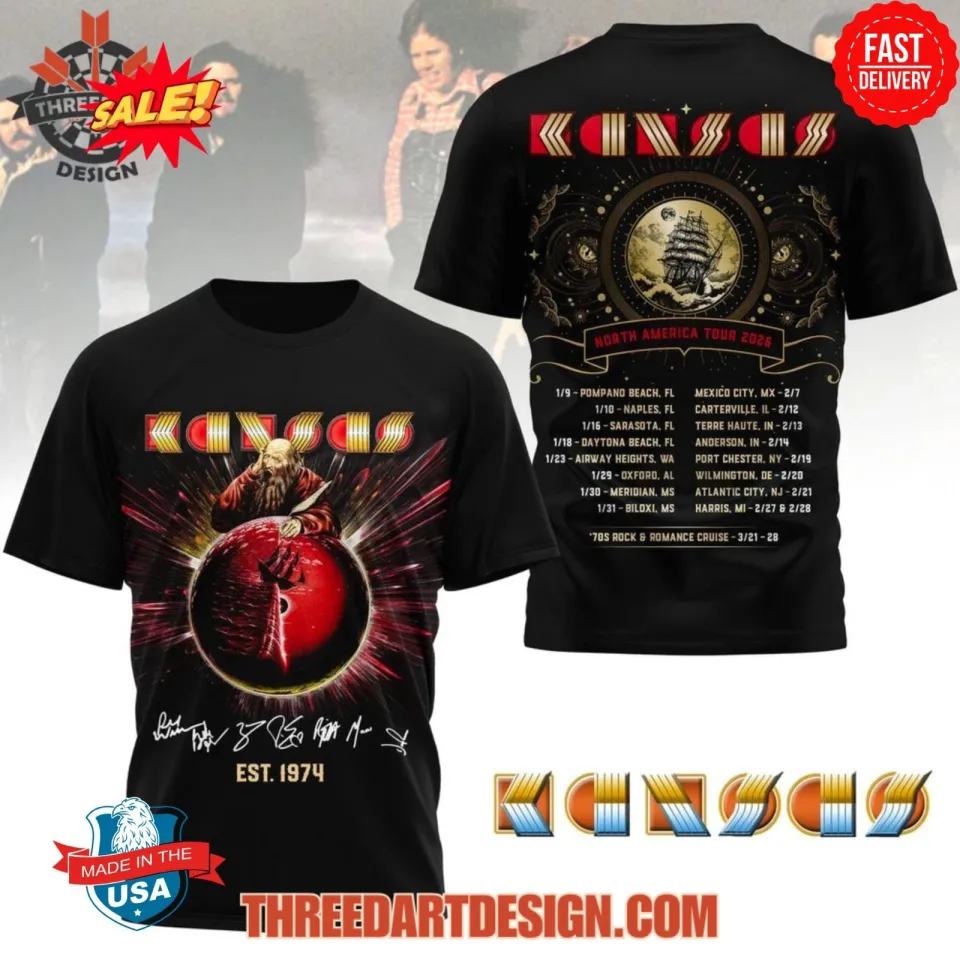 Own fascinating Kansas North America Tour 2026 3D T-Shirt or see more 3D T Shirts products now from Printblur shop to enjoy your shopping time!