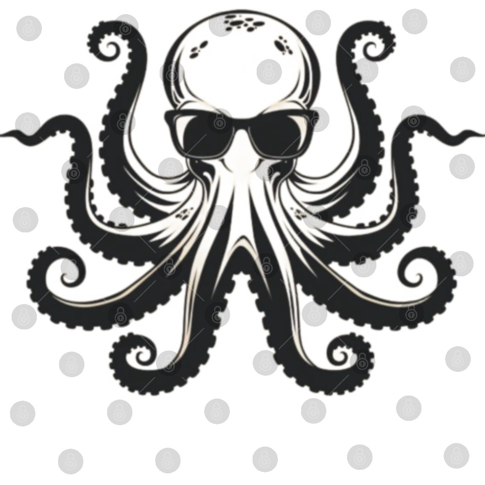 Minimalism Cool Octopus with Sunglasses Digital Files