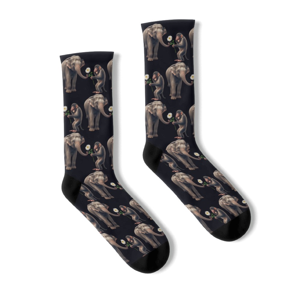 Shop for attractive Monkey Gifting Flower to Shy Elephant Socks or see more Socks products on https://printblur.com right now!