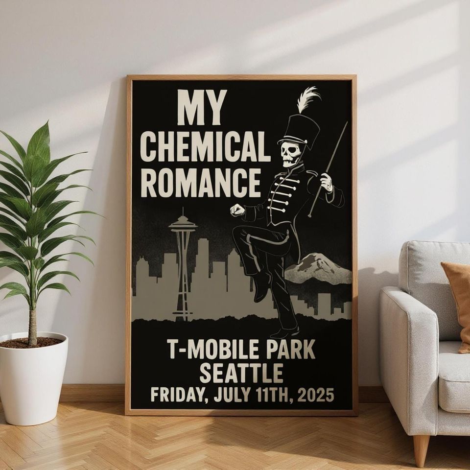 Buy stunning My Chemical Romance Seattle Poster Hand-Drawn 2025 Tour Vertical Poster or see more Premium Matte Vertical Posters products at Printblur right now to receive many amazing discounts!