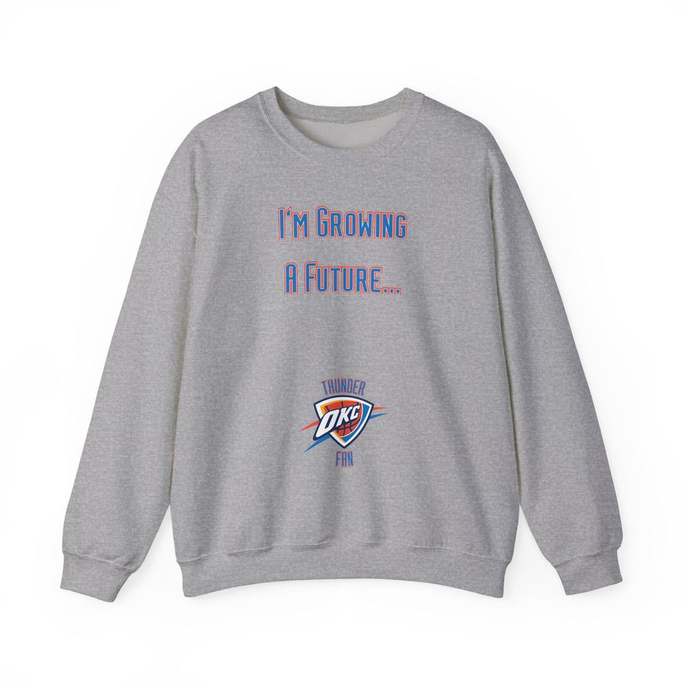 Shop for impressive Oklahoma City Thunder Maternity Sweatshirt | Im Growing a Future Thunder Fan Unisex Crewneck or see more Sweatshirts products right now on Printblur to enjoy your happiness!