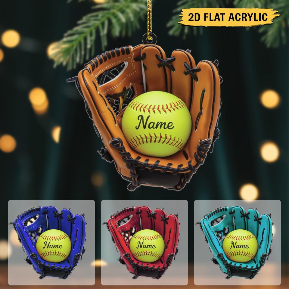 Personalized Baseball Glove Ornament Acrylic | Custom Softball Name Tree Decor | Christmas Gift for Player, Coach, or Sports Fan
