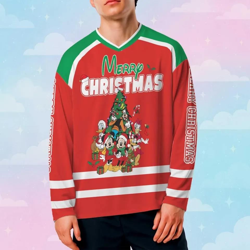 Personalized Merry Christmas Mickey and Friends Hockey Jersey