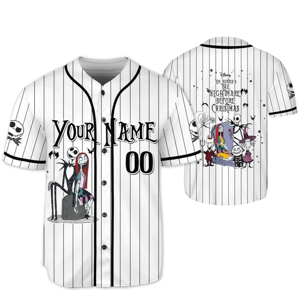 Buy stunning Personalized Skellington Vs Sally Couple Halloween Striped Baseball Jersey Shirt or see more Baseball Jerseys products at Printblur right now to receive many amazing discounts!