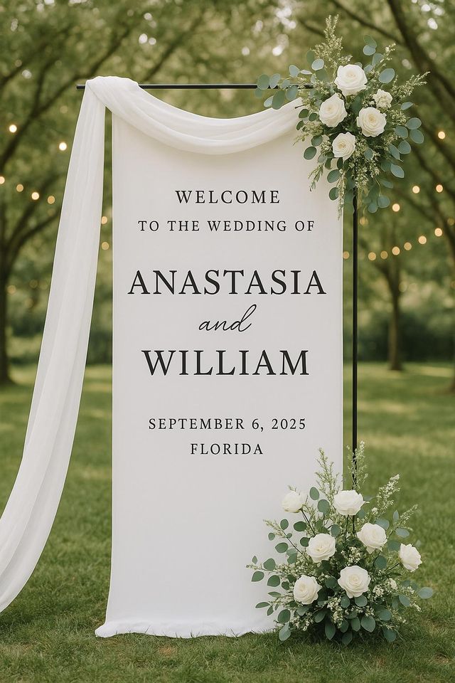 Shop for attractive Personalized Wedding Welcome Sign | Custom Linen Fabric Banner for Ceremony or Reception | Rustic Boho Wedding Decoration or see more Fabric Banners products on https://printblur.com right now!