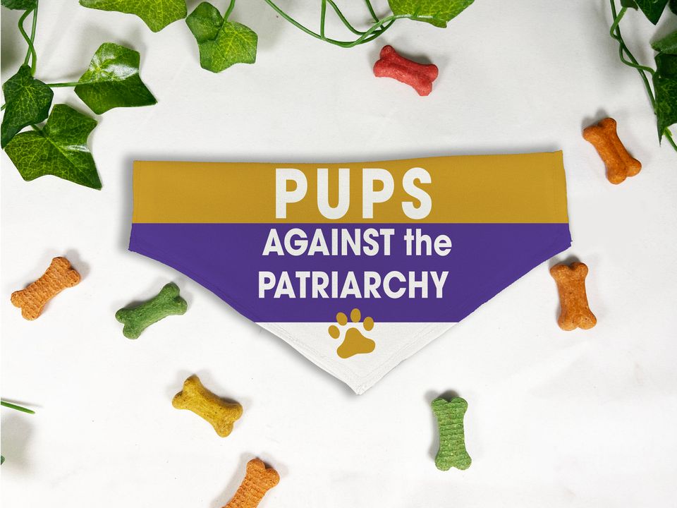 Shop for attractive Pups Against the Patriarchy, Women's Rights, Biden Harris for President or see more Pet Bandana Collars products on https://printblur.com right now!