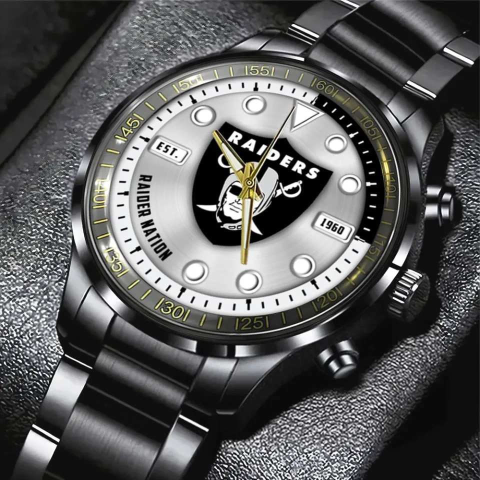 Buy eye-catching Raiders Black Stainless Steel Watch or see more Calendar Steel Band Watch products at Printblur shop now to explore many surprises from our shop!