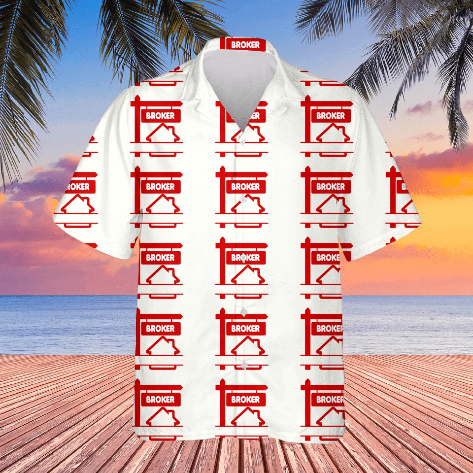 The product unique design you searched for is Red Logo Broker with text space Hawaiians For WHITE belong theme Hawaiian Shirts at Printblur