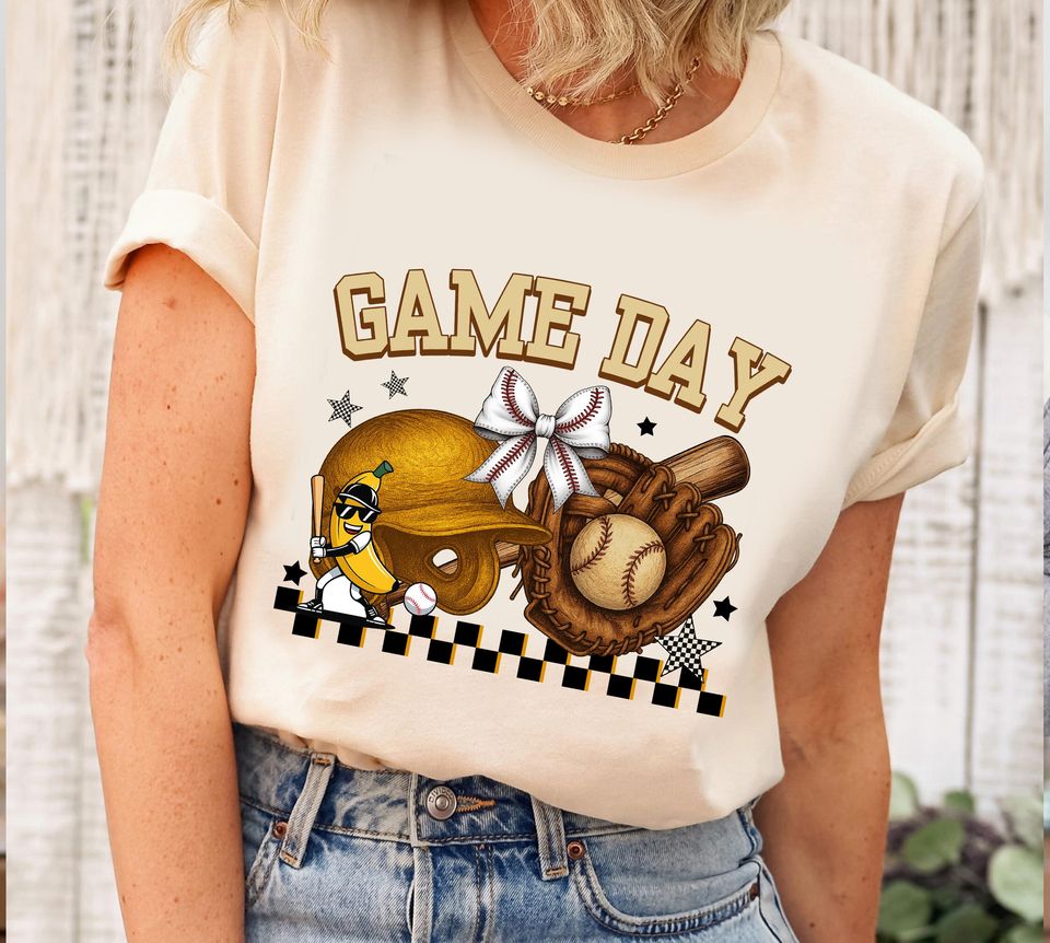 Buy stunning Retro Checkered Baseball T-Shirt, Banana Fan Gift, Coquette Bow or see more T-Shirts products at Printblur right now to receive many amazing discounts!