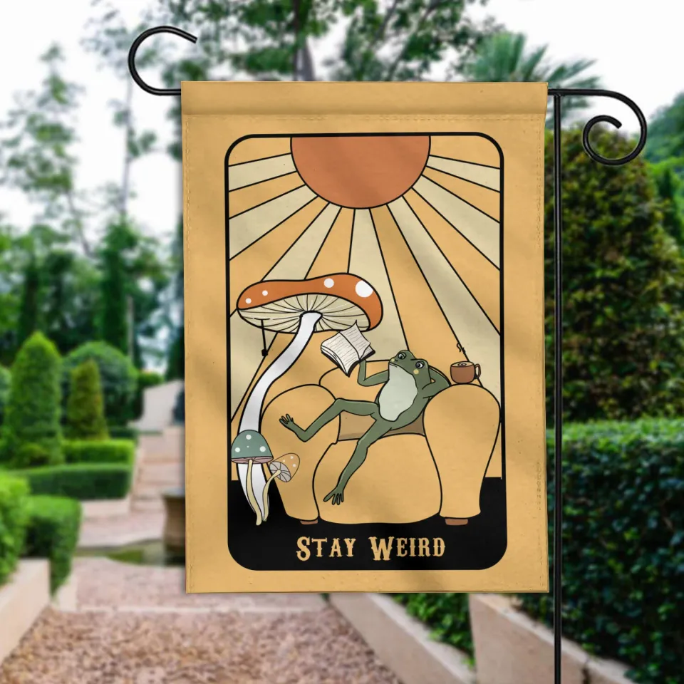 The product unique design you searched for is Retro Frog Stay Weird Flag, Funny Frog Spring Flag, Groovy Frog Summer Flag For belong theme Garden Flags at Printblur