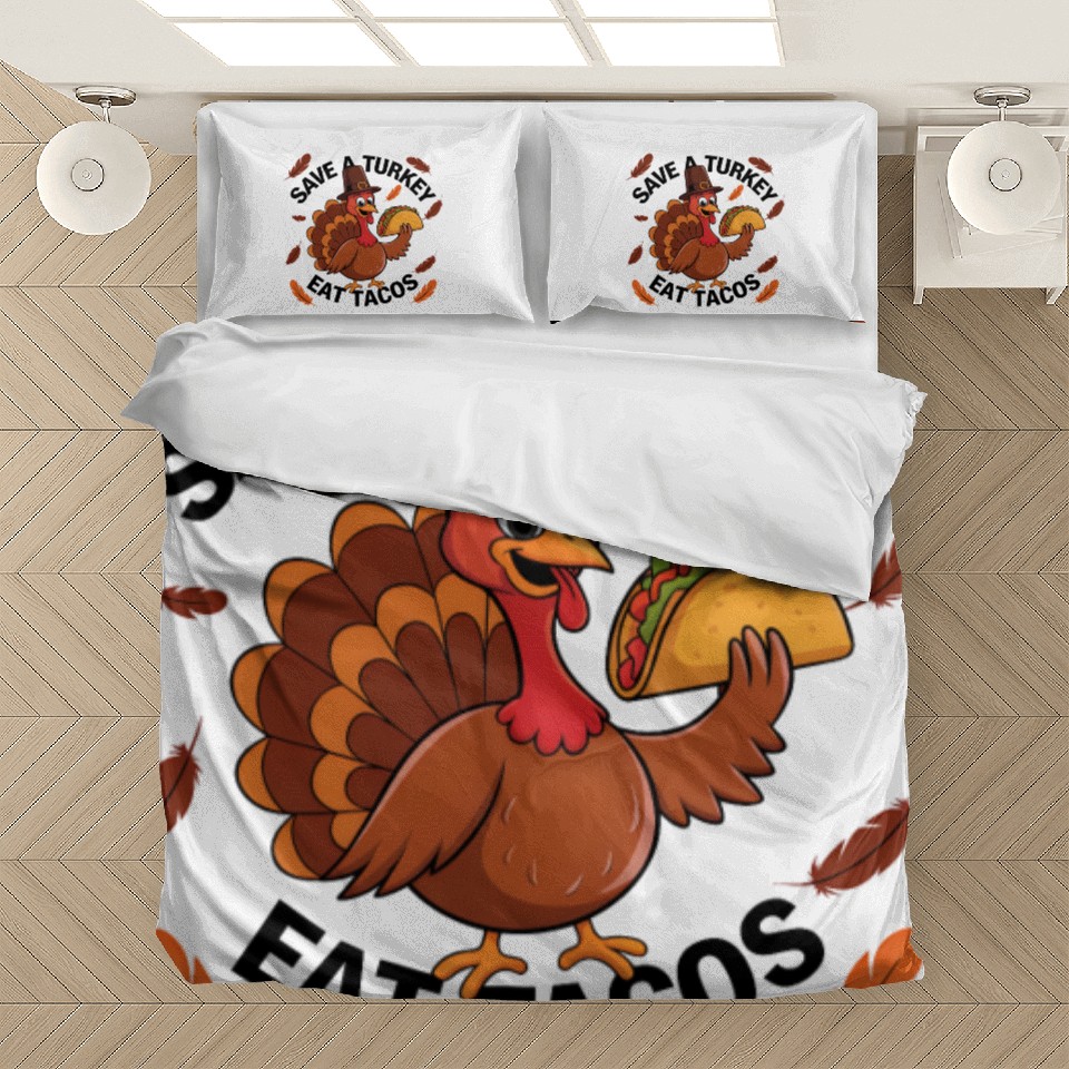 Buy eye-catching Save A Turkey Eat Tacos Thanksgiving Bedding Sets or see more Bedding Sets products at Printblur shop now to explore many surprises from our shop!