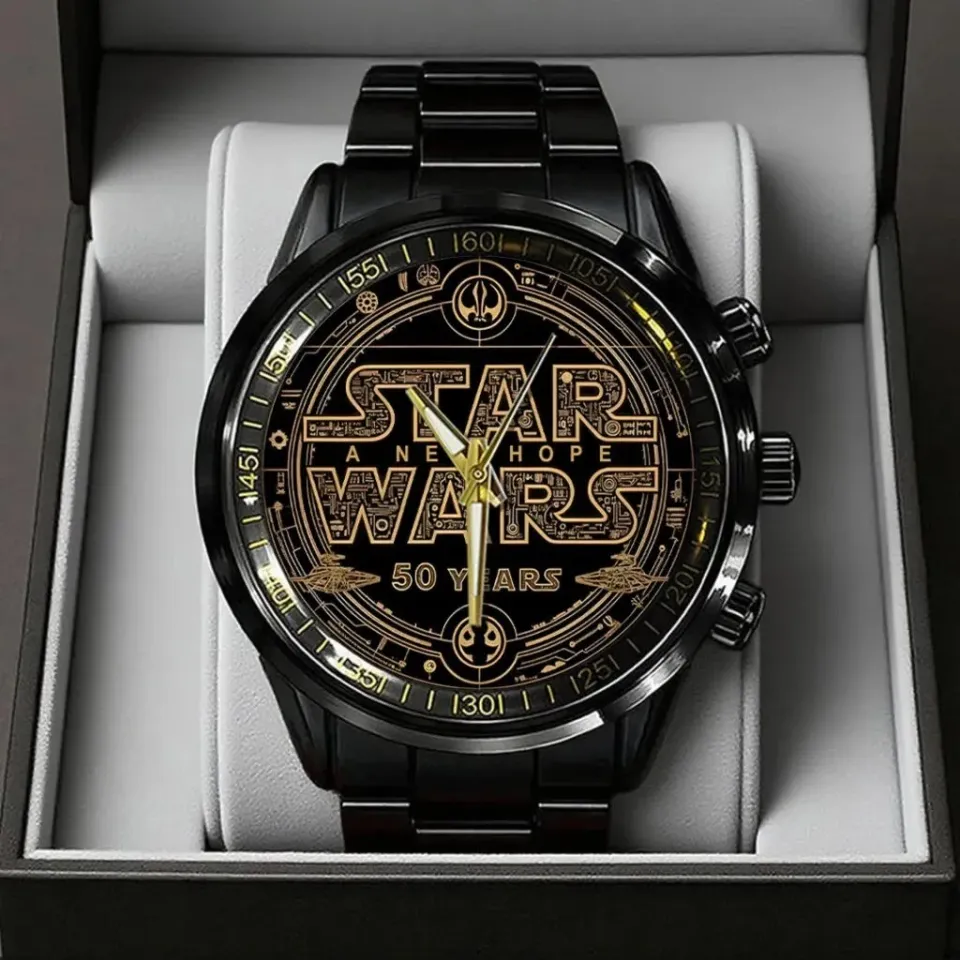 Shop for impressive Star Wars 50th Anniversary Black Stainless Steel Watch or see more Calendar Steel Band Watch products right now on Printblur to enjoy your happiness!