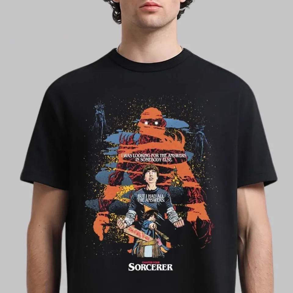 Shop for impressive Stranger Things 5 Chapter Four Sorcerer Art By Butcher Billy T-Shirt or see more T-Shirts products right now on Printblur to enjoy your happiness!