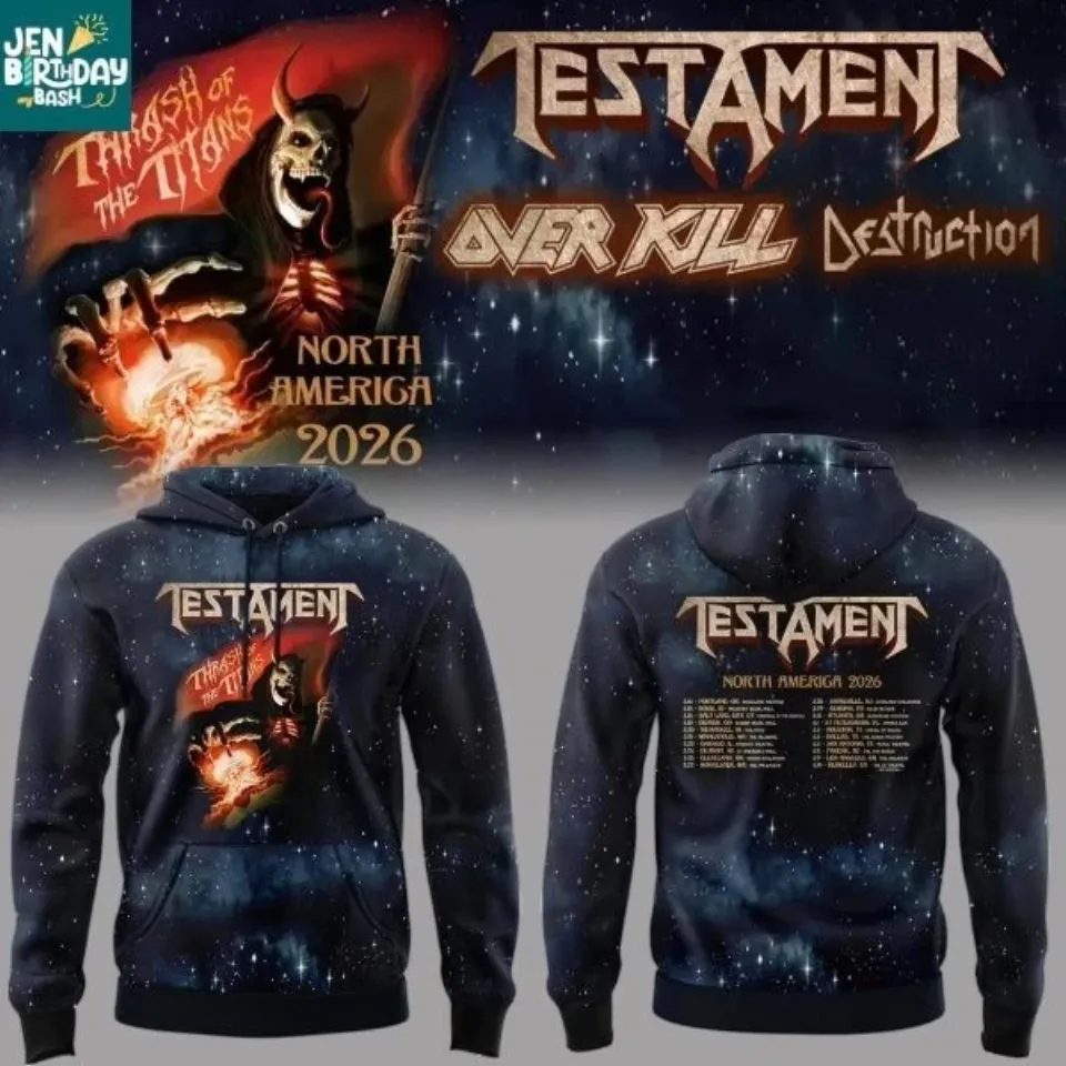 Buy stunning Testament Over Kill Destruction North America 2026 Tour Hoodie or see more 3D Hoodies products at Printblur right now to receive many amazing discounts!