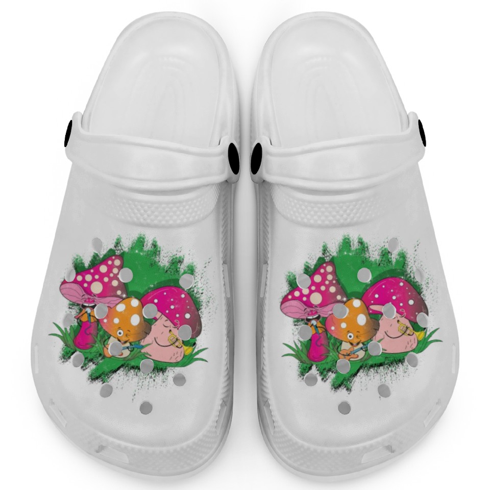 You're taking a peek at the product three mushrooms plating music in a forest - botany Clogs For Kids WHITE belong theme Clogs at Printblur