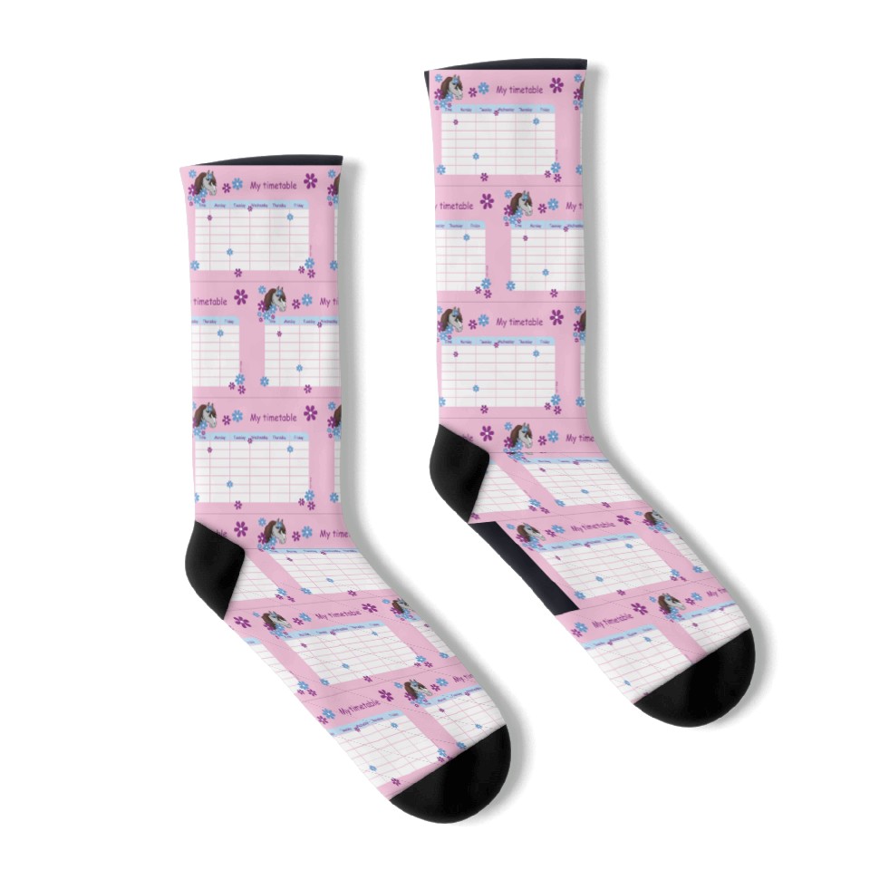 Own fascinating Timetable for Kids - Pony Flowers pink Socks or see more Socks products now from Printblur shop to enjoy your shopping time!