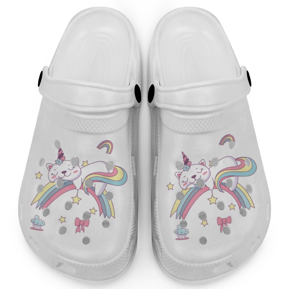 You are viewing one of the trendiest products Unicorn Kawaii Cat Cartoon Over Rainbow Clogs For Kids WHITE belong theme Clogs at Printblur