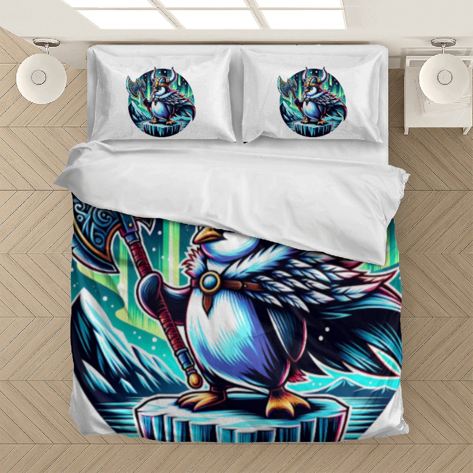 Buy eye-catching Viking Penguin with Axe Under Northern Lights Bedding Sets or see more Bedding Sets products at Printblur shop now to explore many surprises from our shop!