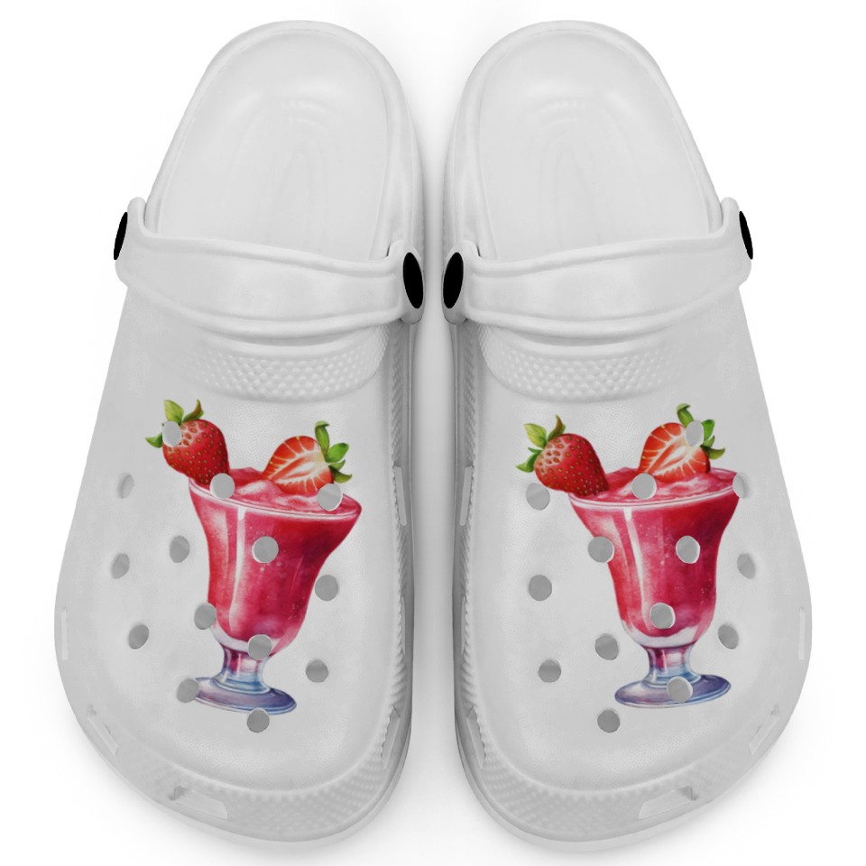 The item hot trend you're looking at is Watercolor Strawberry Cocktail Drink Clogs For Kids WHITE belong theme Clogs at Printblur
