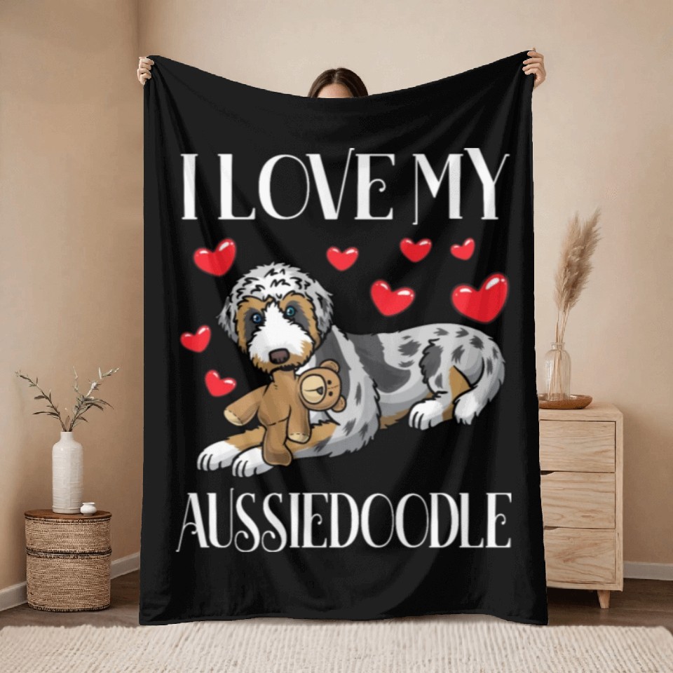 Shop for impressive Aussiedoodle Dog With Stuffed Animal Throw Blankets or see more Throw Blankets products right now on Printblur to enjoy your happiness!