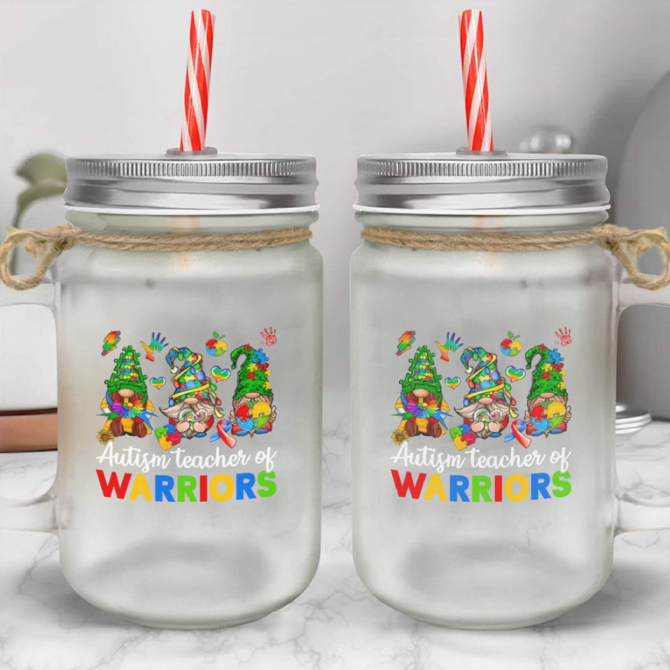 Autism Teacher Of Warriors Gnomes Mason Jar Cups