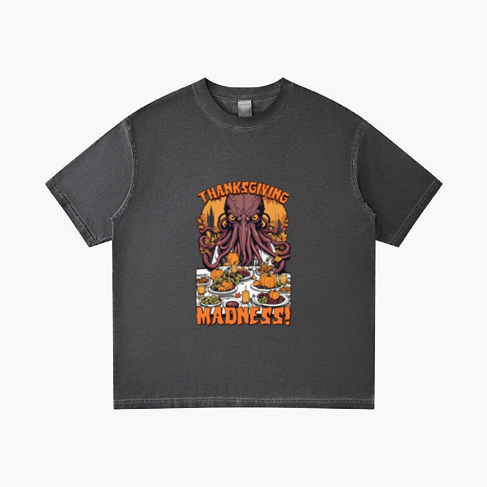 You are seeing a unique and impressive product Autumn Feast with Cthulhu - Thanksgiving Madness Gradient T Shirts For Men Washed Black belong theme Gradient T-Shirts at Printblur