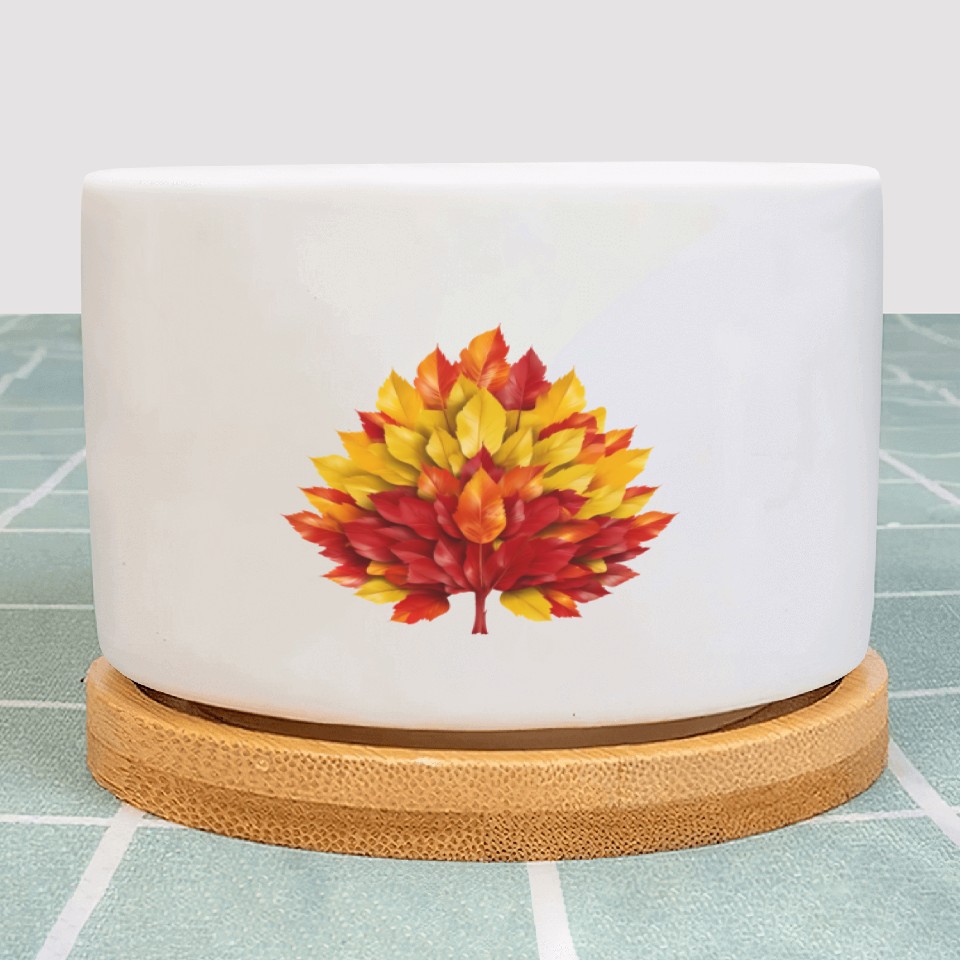 The product unique design you searched for is Autumn in Spain: Yellow-Red Leaves Reflecting the Plant Pots For WHITE belong theme Plant Pots at Printblur