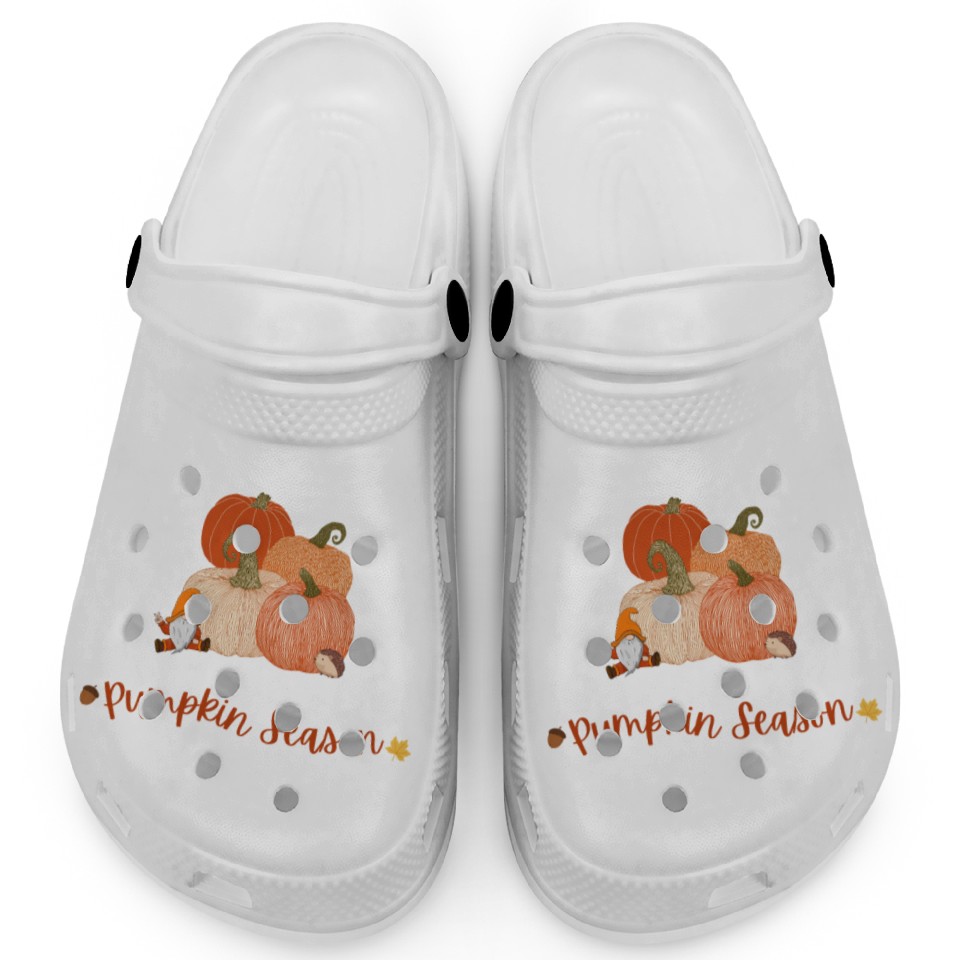 You are seeing a unique and impressive product Autumn Pumpkin Harvest Illustration Clogs For Kids WHITE belong theme Clogs at Printblur