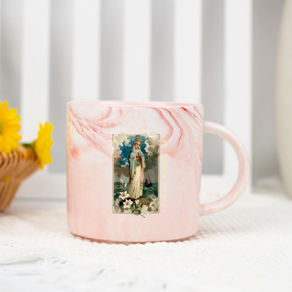 You are viewing an exclusive and elegant product Ave Maris Stella Lady Blessed Mother Mary Marble Mugs For Pink belong theme Marble Mugs at Printblur