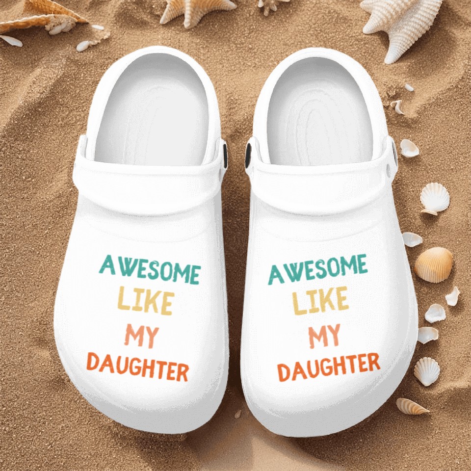 The product unique design you searched for is Awesome Like My Daughter - Proud Dad Nurse Clogs For Men WHITE belong theme Nurse Clogs at Printblur