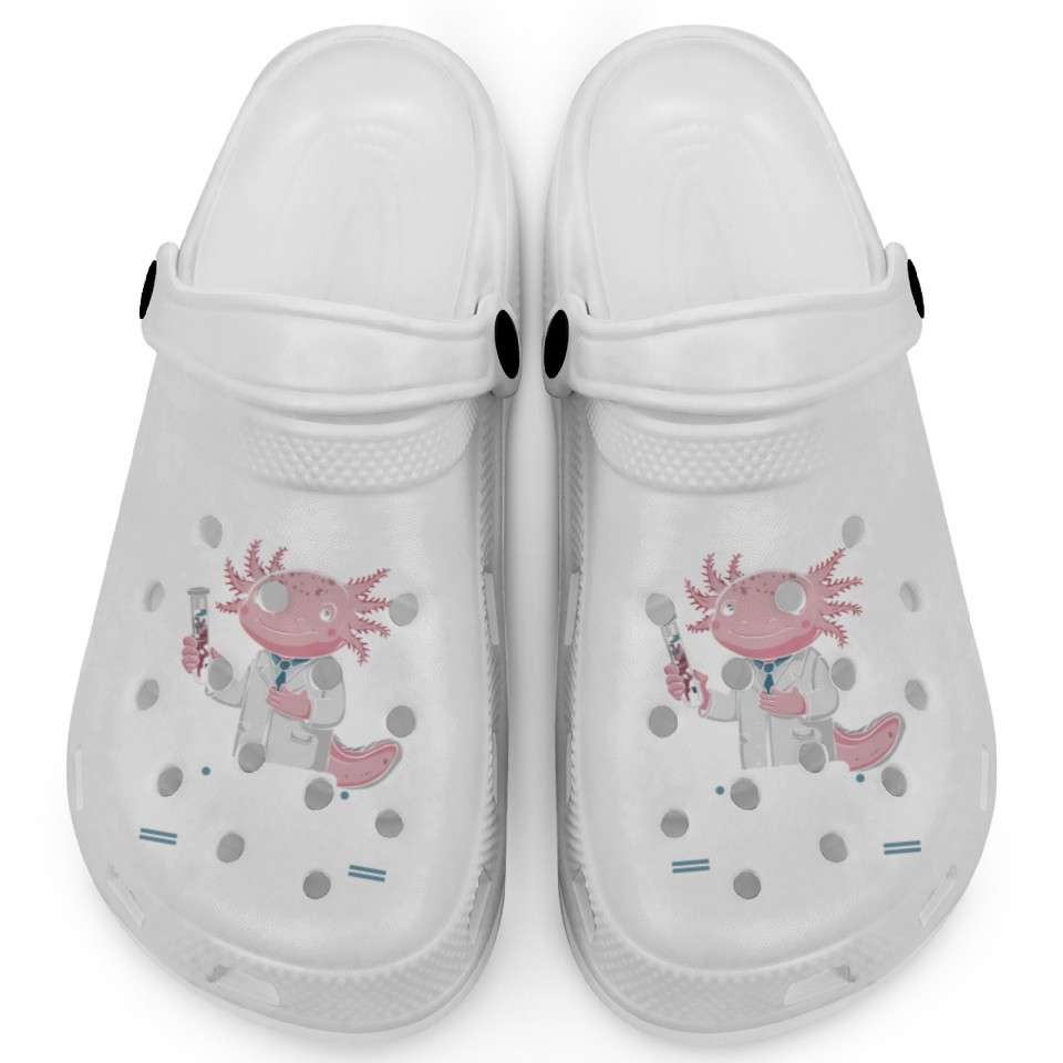 You are shopping for a stunning and trendy product Axolotl Science Teacher Mexican Salamander Clogs For Kids WHITE belong theme Clogs at Printblur