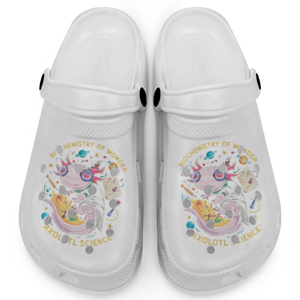 You are shopping for a stunning and trendy product Axolotl Science Teacher Mexican Salamander Clogs For Kids WHITE belong theme Clogs at Printblur