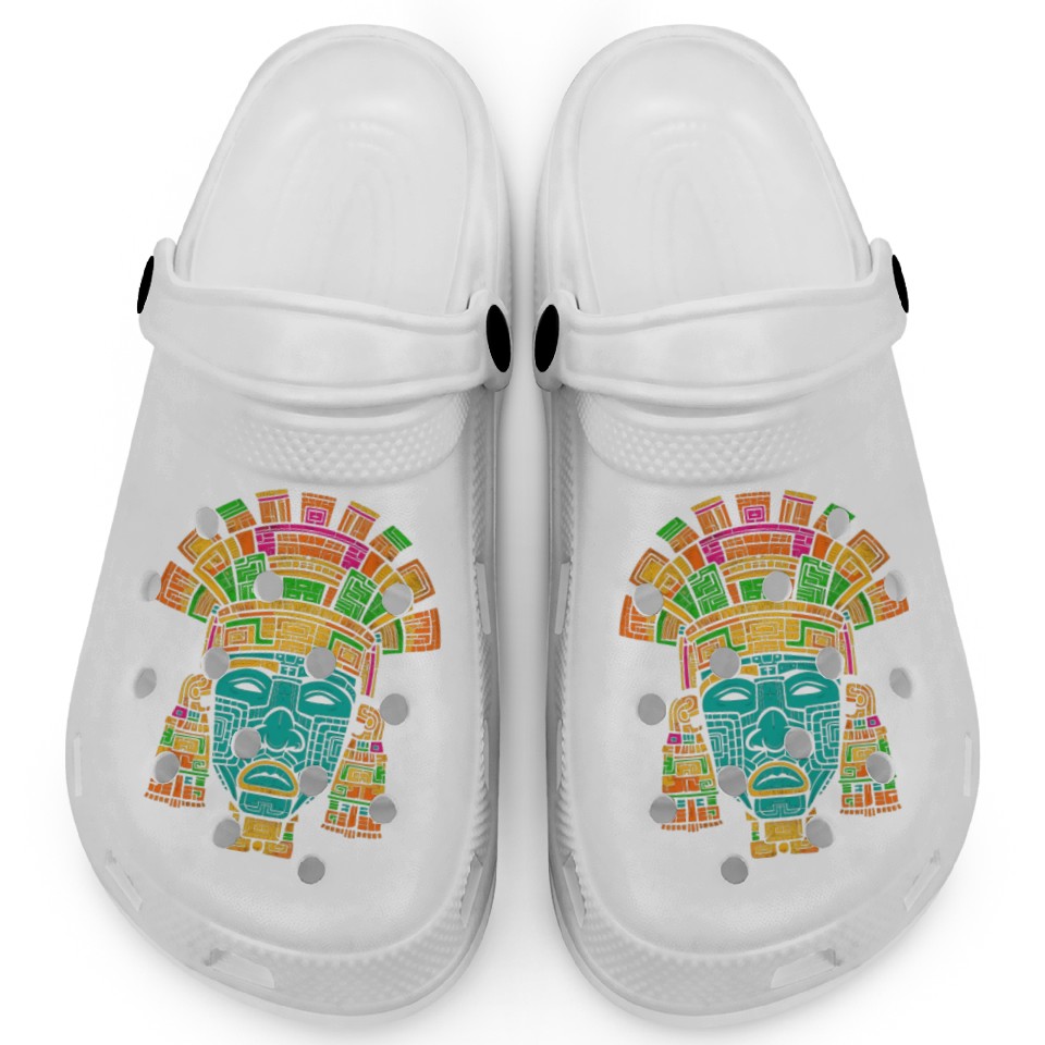 You are shopping for a stunning and trendy product Aztec God Ancient Mythology Tlaloc Mask Vibrant Clogs For Kids WHITE belong theme Clogs at Printblur