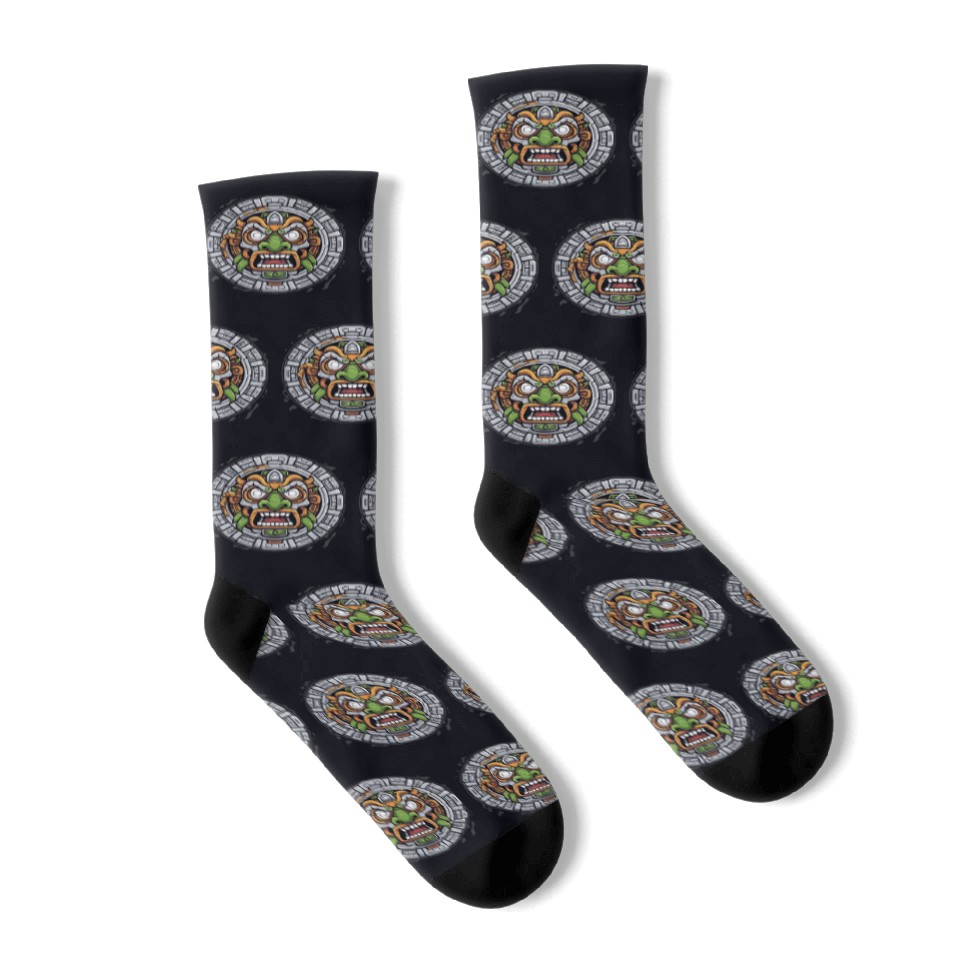 You are shopping for a stunning and trendy product Aztec God Ancient Mythology Tonatiuh Mask Socks For Black belong theme Socks at Printblur