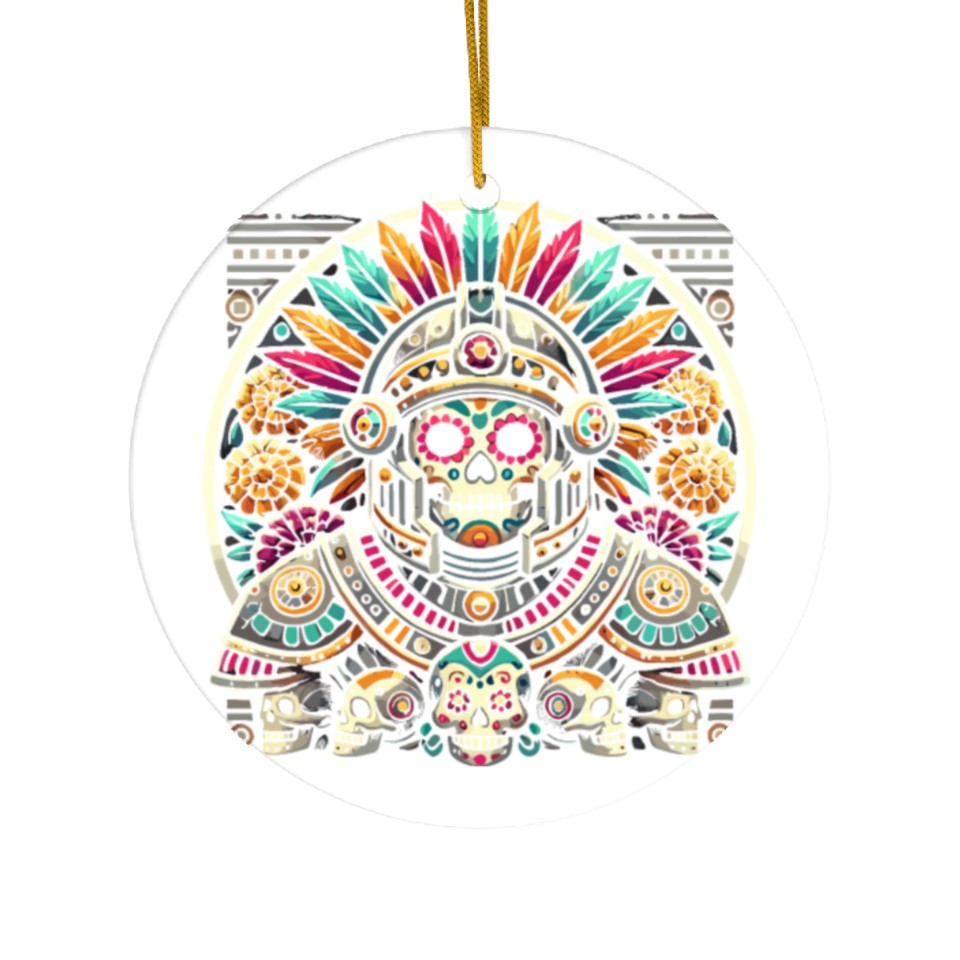You are contemplating one of the best-selling products Aztec Warrior Mask with Tribal Art and Ancient Ceramic Ornaments For WHITE belong theme Ceramic Ornaments at Printblur