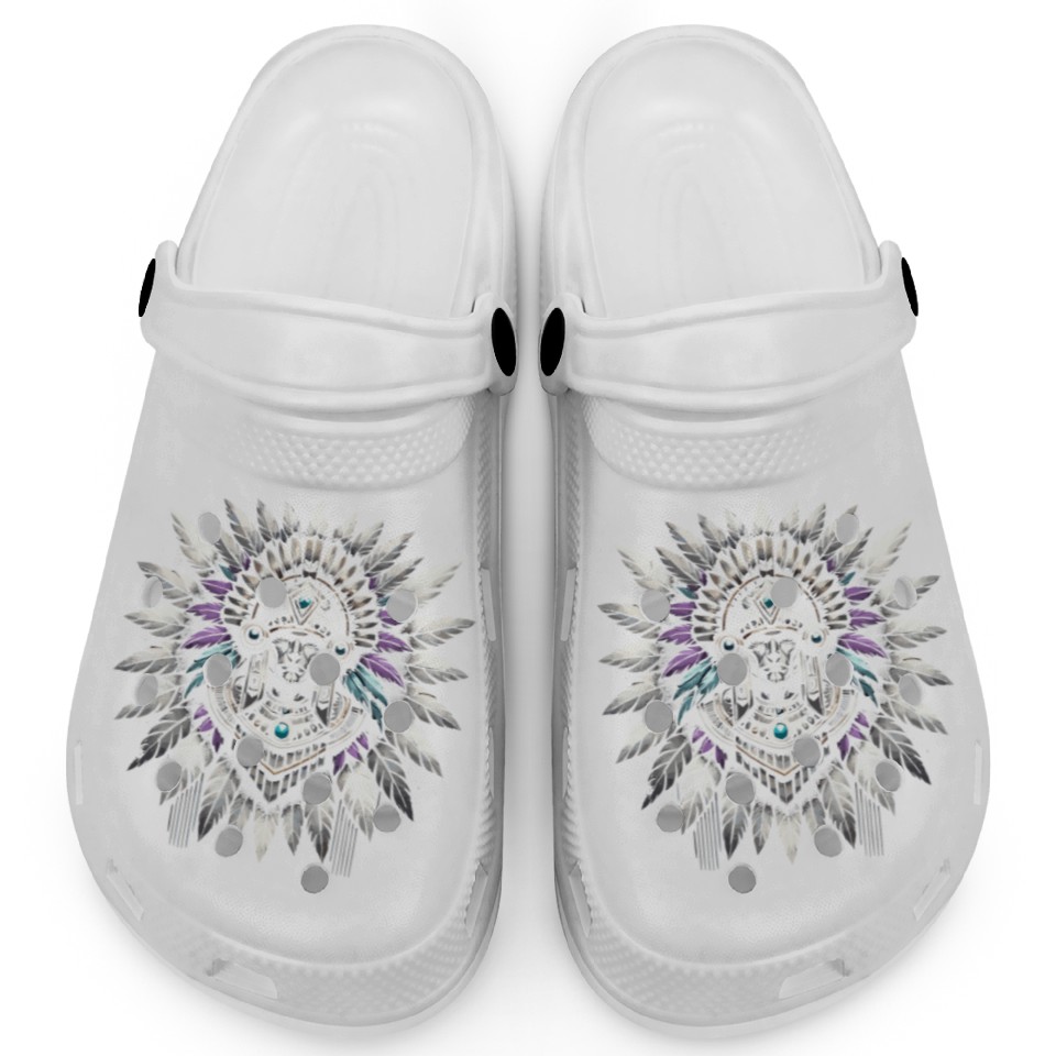 You are viewing an exclusive and elegant product Aztec Warrior Mask with Tribal Art and Ancient Clogs For Kids WHITE belong theme Clogs at Printblur