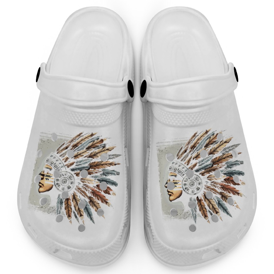 You're searching for a one-of-a-kind product Aztec Warrior Mask with Tribal Art and Ancient Clogs For Kids WHITE belong theme Clogs at Printblur