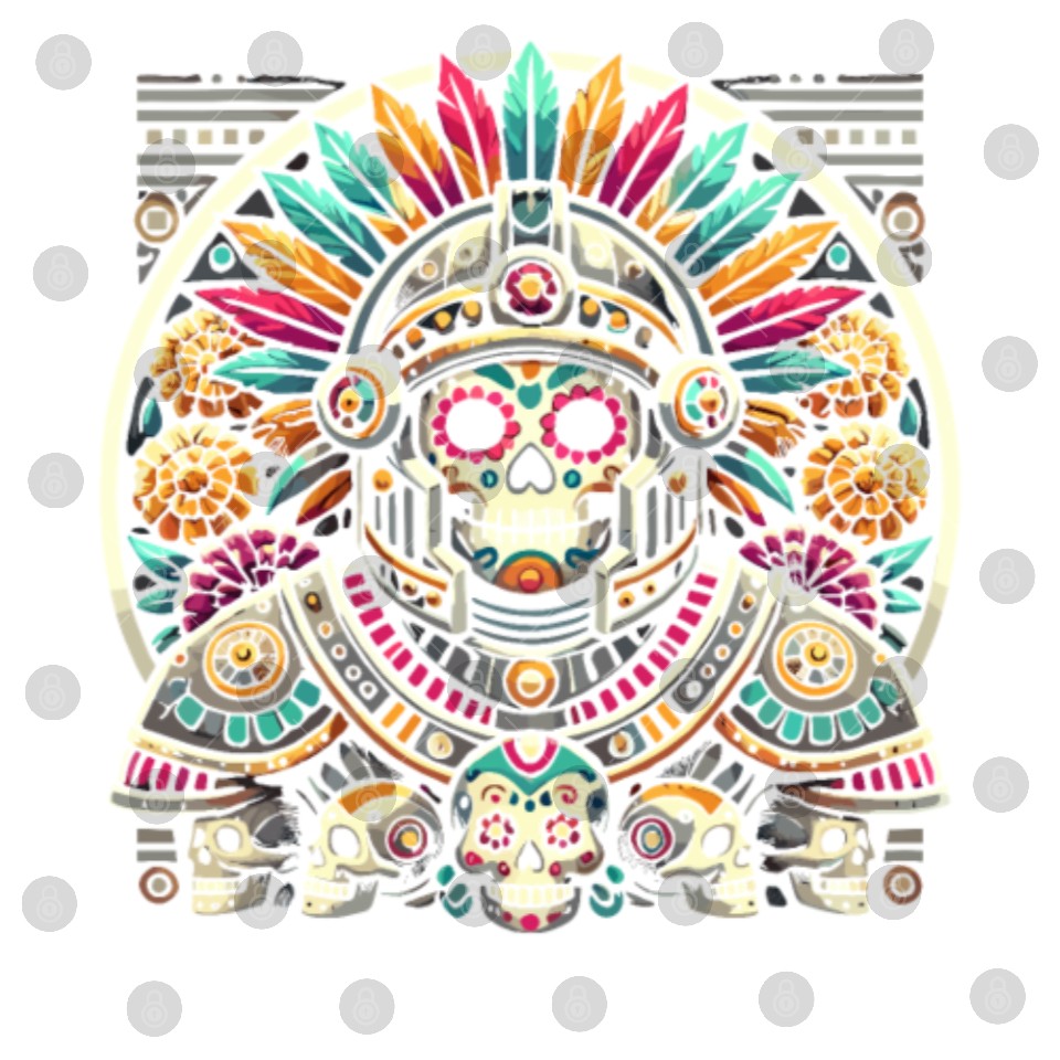 Aztec Warrior Mask with Tribal Art and Ancient Digital Files