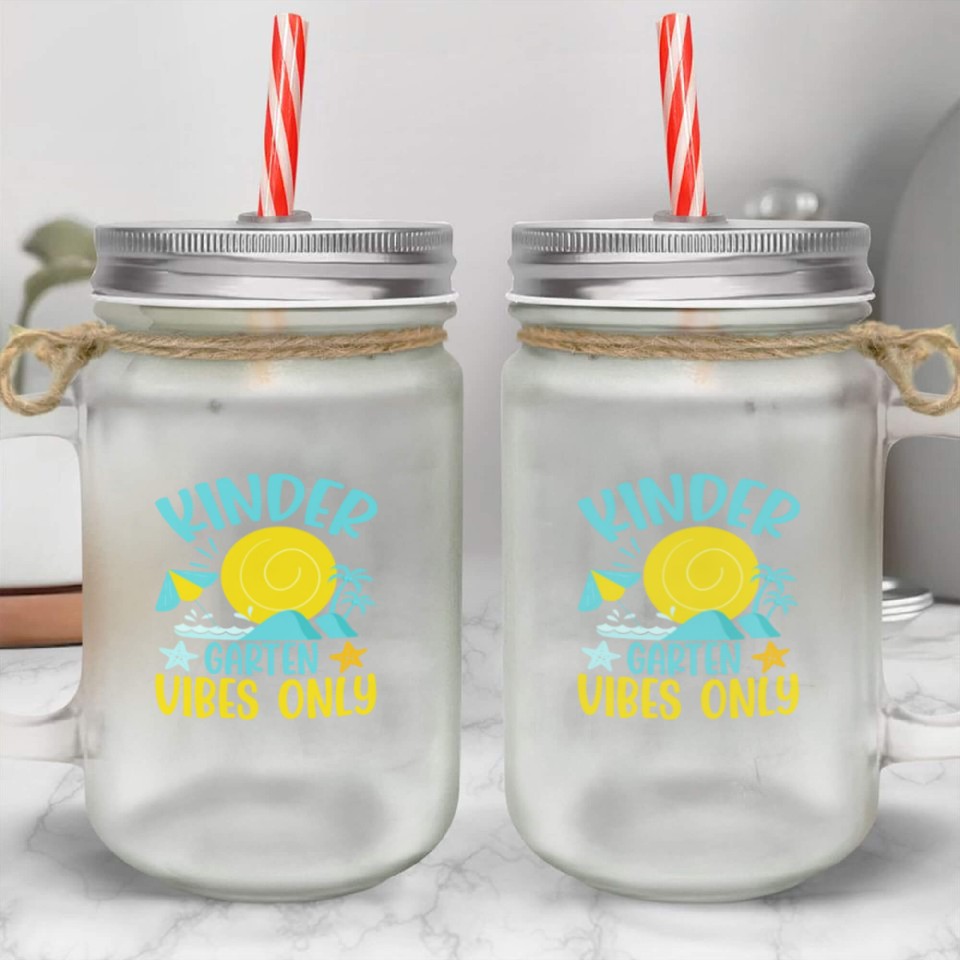 You are seeing a unique and impressive product Back To School Kindergarten Vibes Retro Teacher Mason Jar Cups For belong theme Mason Jar Cups at Printblur