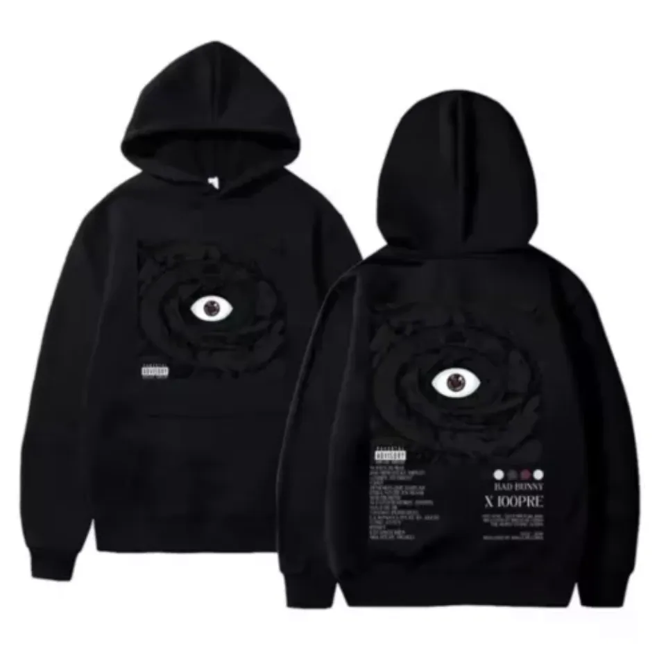 Buy stunning BAD BUNNY X 100PRE HOODIE DOUBLE SIDED ALBUM PRINT PULLOVER or see more Double Sided Hoodies products at Printblur right now to receive many amazing discounts!