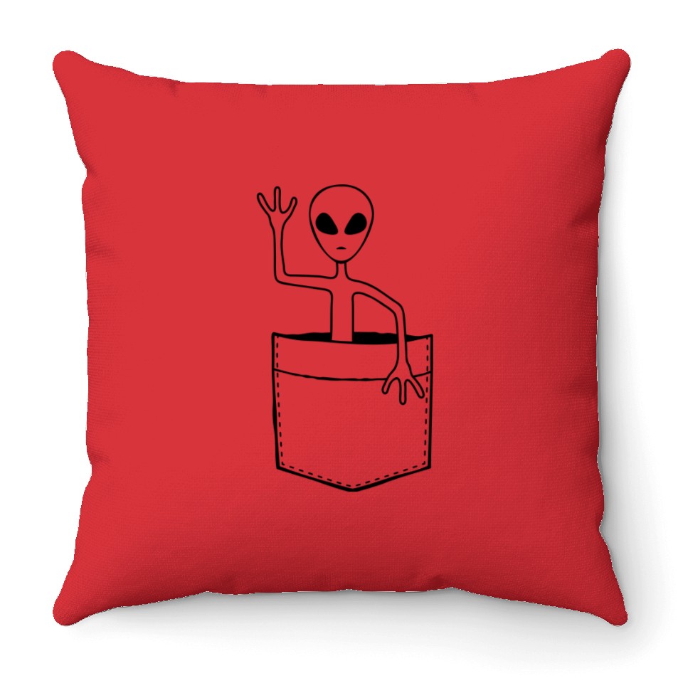 The product unique design you searched for is Bag Alien Waving Friendly Throw Pillows For Cover Only Red belong theme Throw Pillows at Printblur