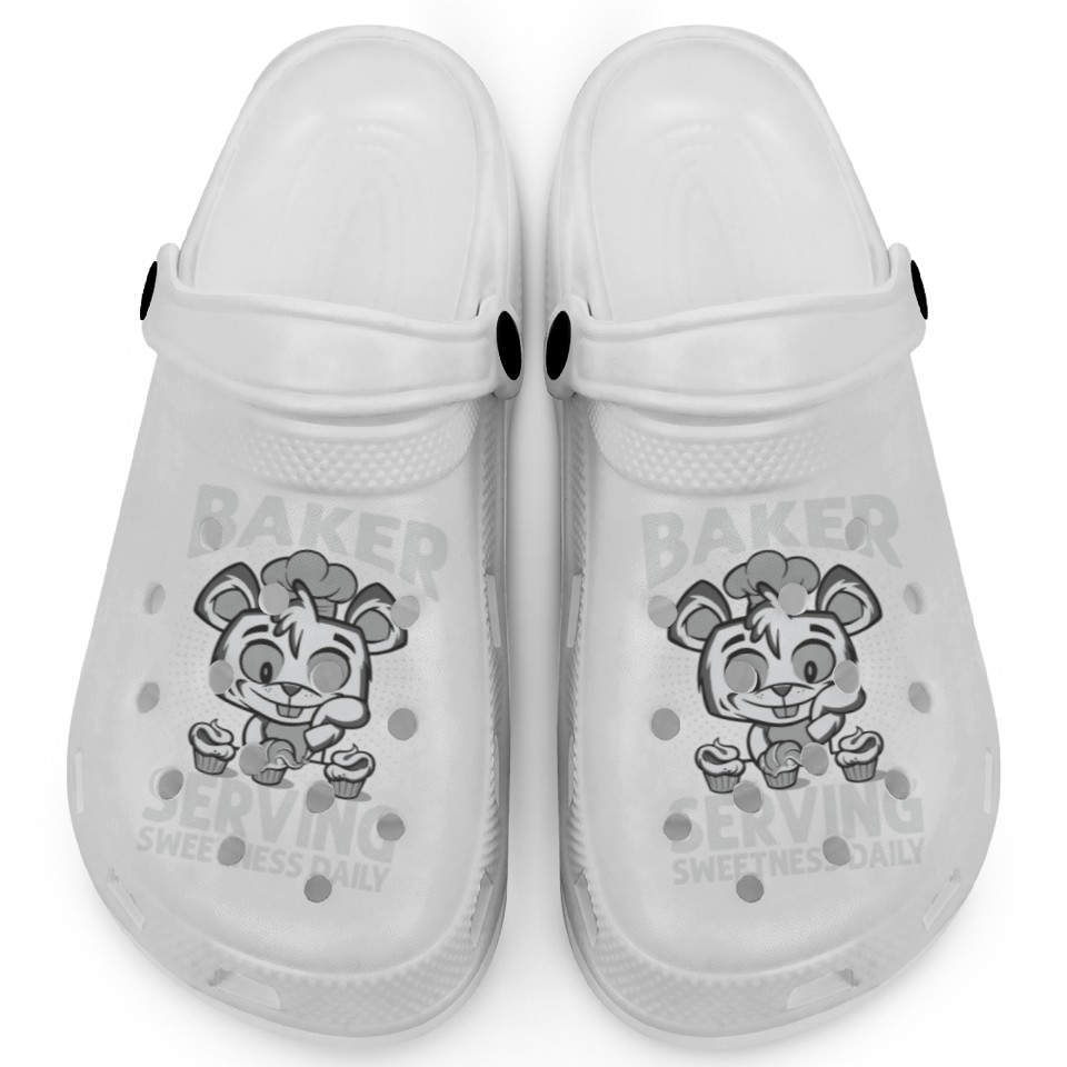 You are shopping for a stunning and trendy product Baker Serving Sweetness Daily - Cakes - Funny - Ba Clogs For Kids WHITE belong theme Clogs at Printblur