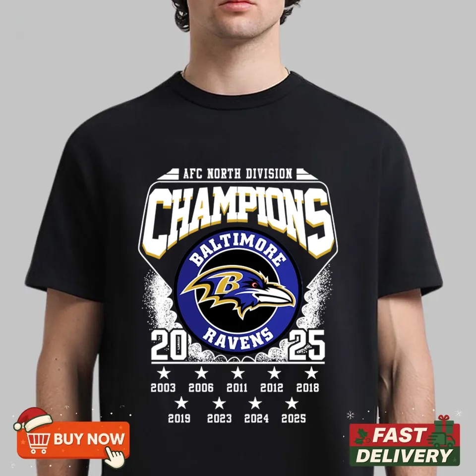 Buy eye-catching Baltimore Ravens AFC North Division Champions 2025 TShirt or see more T-Shirts products at Printblur shop now to explore many surprises from our shop!