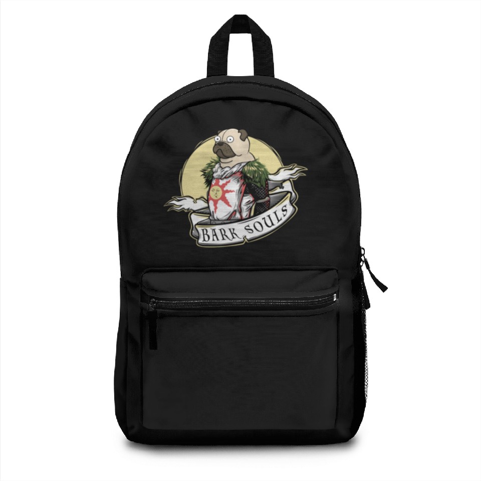 You are shopping for a stunning and trendy product Bark Souls Backpacks - Pug Solaire - Dark Souls For Black belong theme Backpacks at Printblur