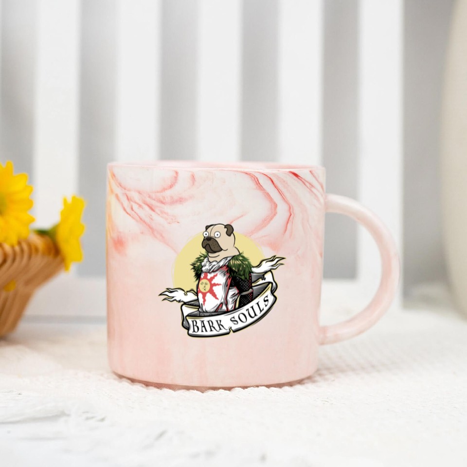You are seeing a unique and impressive product Bark Souls Marble Mugs - Pug Solaire - Dark Souls For Pink belong theme Marble Mugs at Printblur