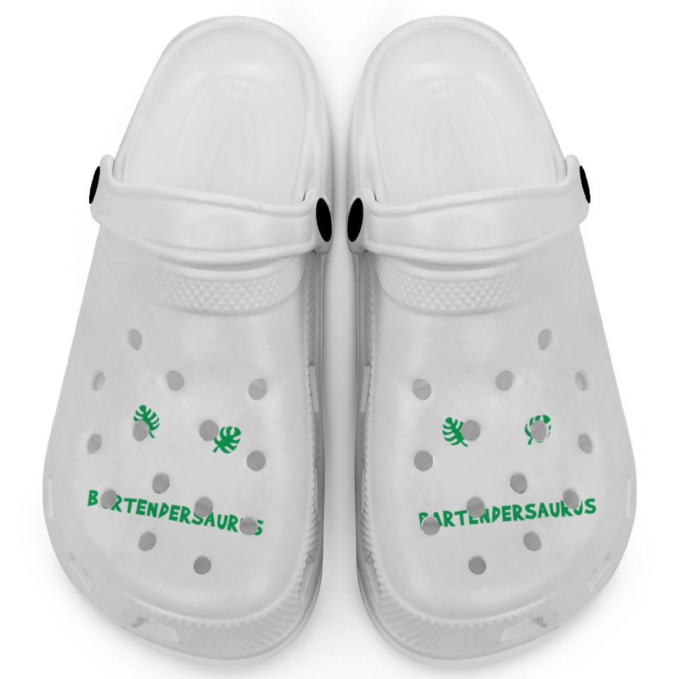 You're taking a peek at the product Bartender Saurus Dinosaurs Clogs For Kids WHITE belong theme Clogs at Printblur