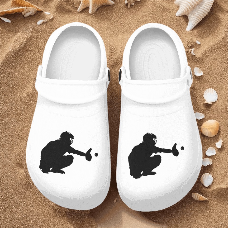 The product unique design you searched for is Baseball catcher waiting to catch a pitch Nurse Clogs For Men WHITE belong theme Nurse Clogs at Printblur