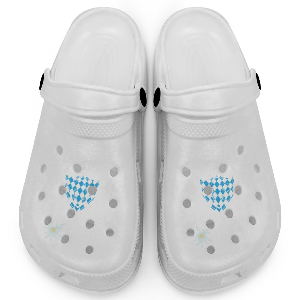 You're looking at the eye-catching product Bavarian Outlaw - Servus Bavaria Clogs For Kids WHITE belong theme Clogs at Printblur