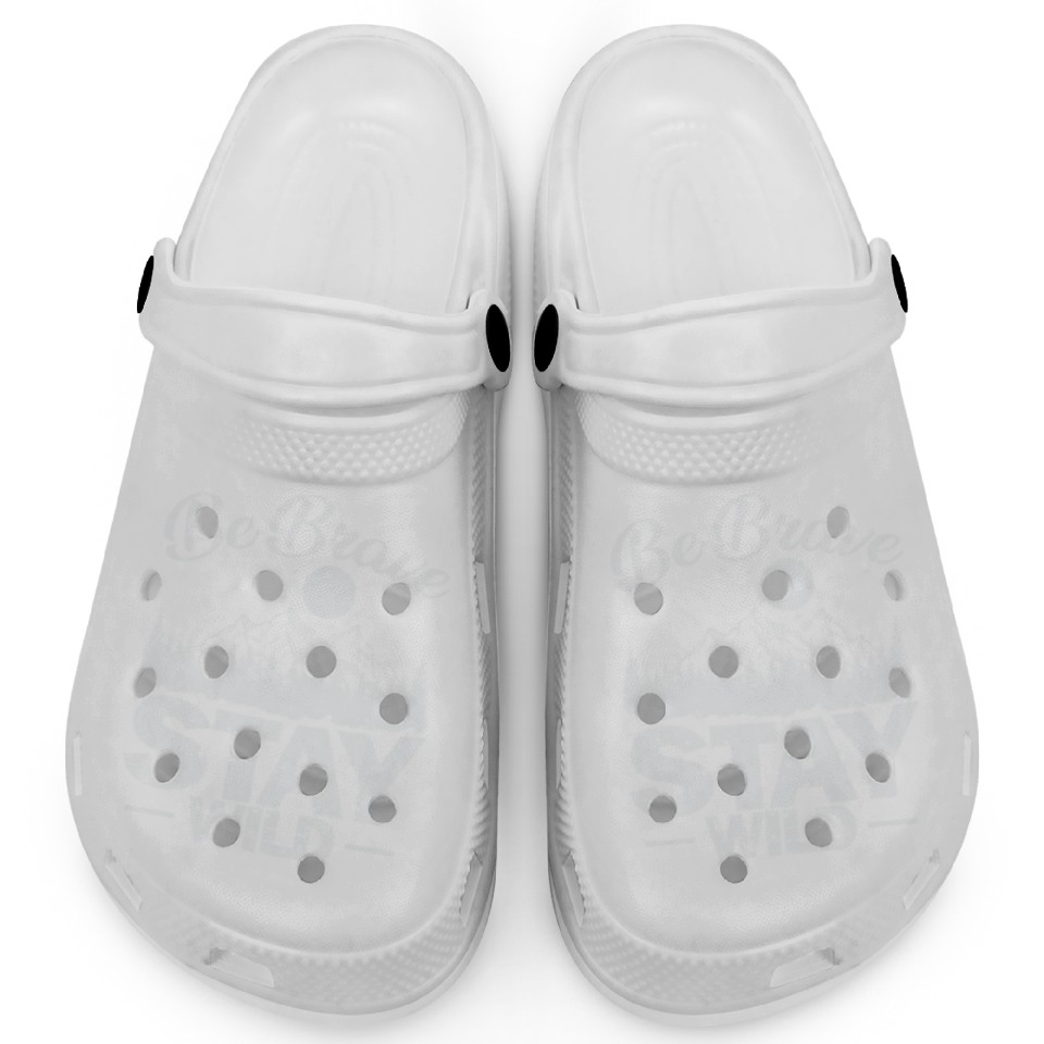 You're taking a peek at the product Be Brave Stay Wild Hiking Nature Clogs For Kids WHITE belong theme Clogs at Printblur