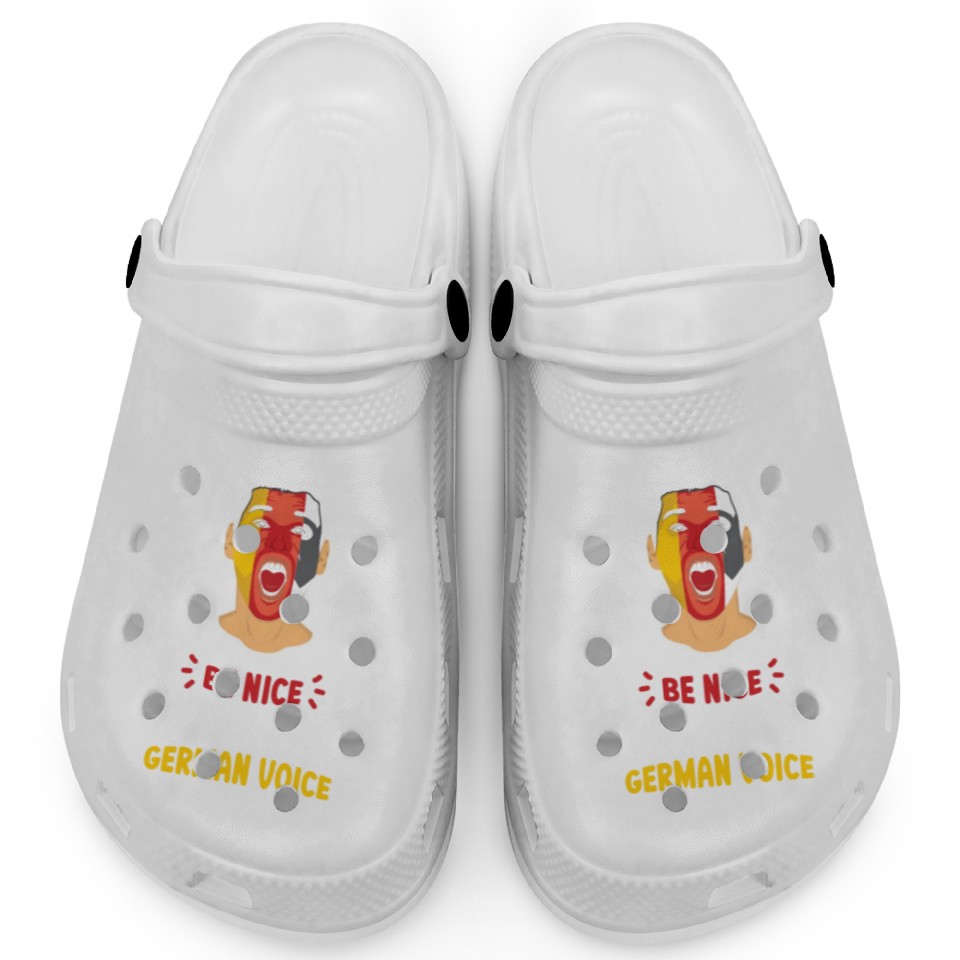 You're looking at the eye-catching product Be Nice Or I'll Use My German Voice Scream Teacher Clogs For Kids WHITE belong theme Clogs at Printblur